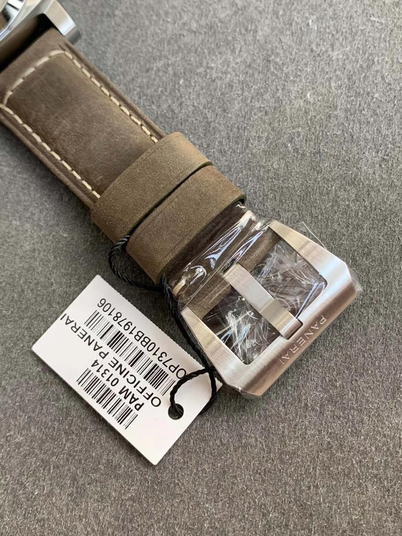 5:腕表不仅是一种时间工具,更是一种时尚的象征。VS厂沛纳海PAM1314复刻版在佩戴舒适性上也很有讲究。其配备的高品质表带,采用了顶级淡褐色牛皮材质,手感柔软,同时也具有极好的透气性,表扣同步原装316L精钢材质,针扣的设计结构方式,表扣上的沛纳海LOGO刻字做工细节一步到位,完全看得出VS厂沛纳海1314细节品质是最好的。